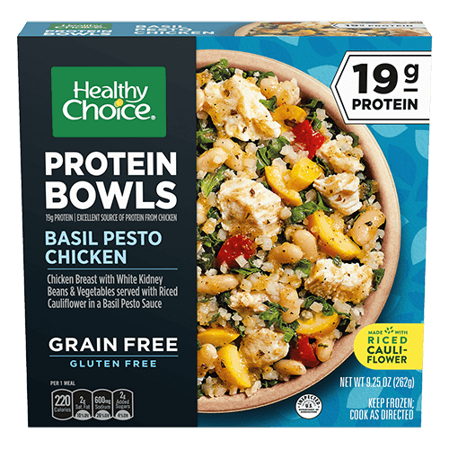 Pesto lovers, this one’s for you! This Healthy Choice® Basil Pesto Chicken Protein Bowl combines all-natural* pulled chicken breast with white kidney beans, a nutrient-dense vegetable mix, riced cauliflower, and a bright basil pesto that will liven up your day—and your taste buds.