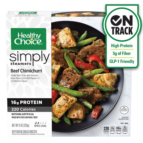 Treat your taste buds with this savory dish featuring tender beef strips, potatoes, green beans, and red bell peppers all tossed in a delicious chimichurri sauce—and there’s nothing artificial. With 220 calories and 16 g of protein, Healthy Choice® makes it easy to eat mindfully while still enjoying the bold, flavorful meals you crave.