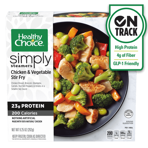 Enjoy this Asian-inspired dish of 100% natural* chicken breast and a feel-good blend of veggies: broccoli, edamame, carrot, red bell pepper, and onion. With a flavorful sesame soy sauce and an incredible 40% of your daily protein, it's a low-carb sensation.